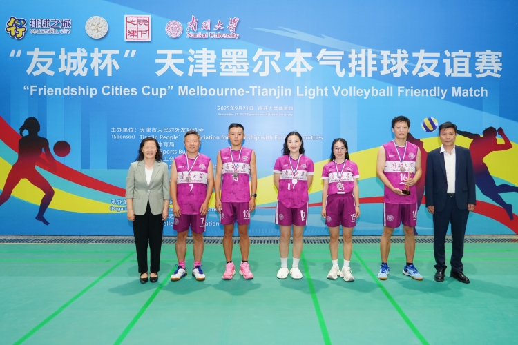 After the speech, Chen and Reece attended the finals and award ceremony of the “Friendship Cities Cup” Melbourne-Tianjin Light Volleyball Friendly Match at the Gymnasium on Balitai Campus, jointly presenting trophies to the champion team and medals to participating athletes.