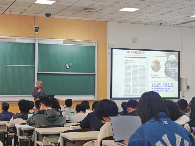 Le 23 mars après-midi, Sun Changpu, académicien de l’Académie des sciences de Chine et de l’Académie des sciences du Tiers-Monde, a été l'invité du cycle de conférences « Physique d’aujourd’hui » organisé par l’École des sciences physiques de Nankai. Il a présenté une conférence thématique intitulée « De l’apprentissage créatif à la recherche scientifique ». L’académicien Sun Changpu a souligné l’importance de développer les compétences en « identification et résolution de problèmes », partagé son expérience de l’apprentissage créatif, et analysé en profondeur les enjeux liés à « l’innovation des connaissances et aux zones grises de la recherche académique ».