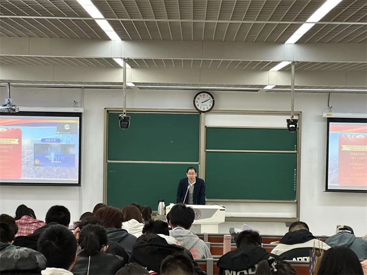 牛文利从“永载史册的伟大变革”、“引领复兴的伟大蓝图”、“笃行不怠战略定力”三个方面进行授课。首先,他带领同学们回顾党的十八大以来中国发生的翻天覆地的变化。结合习近平总书记视察南开大学重要讲话精神,牛文利鼓励同学们把小我融入大我,勇担时代使命,在中华民族伟大复兴的生动实践中不懈努力、书写篇章。