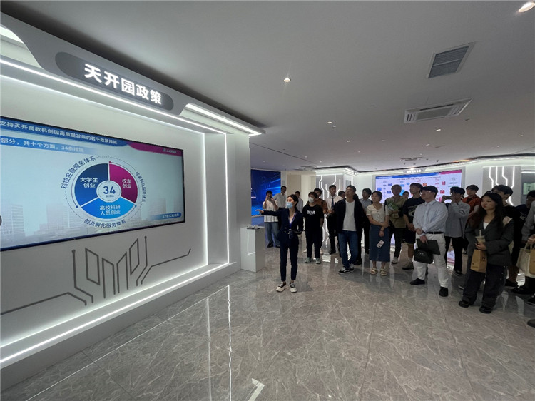 活动中,南开大学师生代表走进天开园,实地了解园区规划和服务,参观了“南开科技力量”科技展。在综合服务楼一楼的服务大厅中,汇集企业开办、政务服务、社保人社、纳税服务等各项业务的“一站式”服务平台让同学们感到了园区的温暖与贴心。