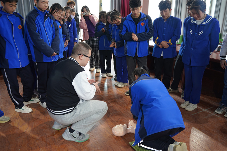 支部党员在韩店中学进行健康知识宣讲及急救技能实操练习指导